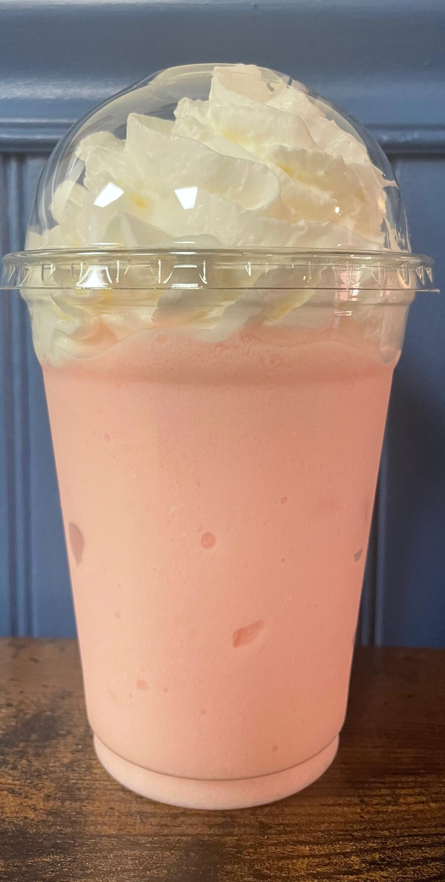 One of our new drinks, Whipped Lemonade. This one has strawberry added.
